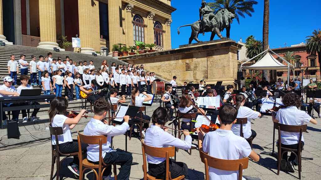 Seicento studenti sulla scalinata del Teatro Massimo per una mattinata di musica e festa: si conclude così la XXVIII edizione di «Panormus. La scuola adotta la città», il progetto del Comune di Palermo nato nel 1994 e quest’anno dedicato a Santa Rosalia in occasione del 400º anniversario del ritrovamento delle spoglie.