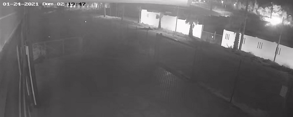 Si vede una fiammata, il rogo divampa per qualche secondo, poi a poco a poco si spegne. Poco più di un minuto dopo, alle 2.11 e 43, la stessa figura che si era allontanata dal fuoco, torna sul punto dell’incendio.