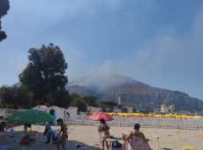 Palermo, vista dall'alto, è la periferia dell'inferno. Le fiamme hanno avvolto in parecchi punti il perimetro della città. Fino alle 11 per precauzione resta chiuso l'aeroporto. La protezione civile invita a non uscire di casa per il rischio diassina dovuto alle fiamme che hanno avvolto Bellolampo