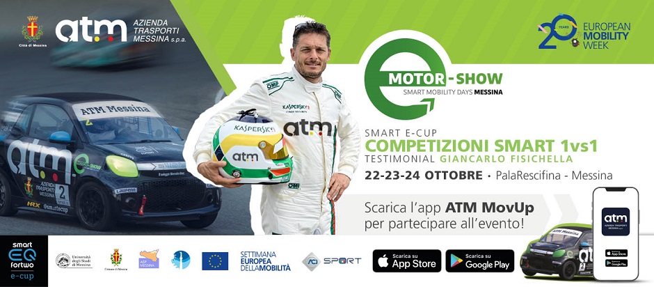 Grande spettacolo con rombo di motori dal 22 al 24 ottobre prossimi al pala Rescifina con l’e-motorshow di Messina. L’evento, collegato alla “Settimana Europea della Mobilità”, e organizzato da Atm spa, ha come obiettivo la promozione del trasporto pubblico urbano, della mobilità sostenibile e della nuova app Atm MovUp. Il punto di forza sarà la smart e-cup, il campionato 100% elettrico ufficiale di Mercedes-Benz Italia, il primo al mondo dedicato ad una vettura turismo elettrica. Giovedì 21 ottobre alle ore 11 le auto da competizione sbarcheranno a Messina e faranno il loro ingresso in città attraversando le vie del centro. Alla competizione si alterneranno esibizioni di auto d’epoca, vespe, vetture da rally e formula.