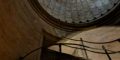 L’architetto che preconizzò il Liberty a Palermo ha dotato la struttura di sinuosità e volute, sormontate da una cupoletta. A realizzarla gli intagliatori Sacco con una tecnica particolare di intarsio a tufo. Al posto di una normale scala, Giachery scelse di realizzare un capolavoro, dando così prova empirica delle sue conoscenze teoriche sul taglio della pietra. La scala è interamente realizzata a sbalzo e si snoda in modo concentrico all’interno di un alto tamburo, sovrastato dalla cupola sferica, questa si chiude con un occhio circolare coperta da un lucernario in ferro e vetro. Benchè il Liberty sia ancora di là da venire, il gusto di questa realizzazione è di chiara matrice pre-modernista. In un angolo si legge il nome “Sacco” dell’incisore e la data del 1852.