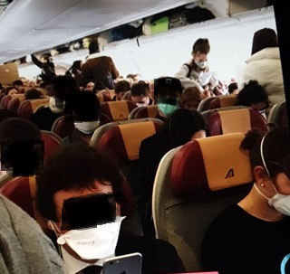 Ma l’episodio che più ha sbalordito, per non dire spaventato, la ragazza è stato il trovarsi in un aereo pieno di passeggeri seduti vicini ai quali non sono state garantite le condizioni per tenersi ad una distanza interpersonale di un metro. La nota positiva è che tutti indossavano la mascherina.