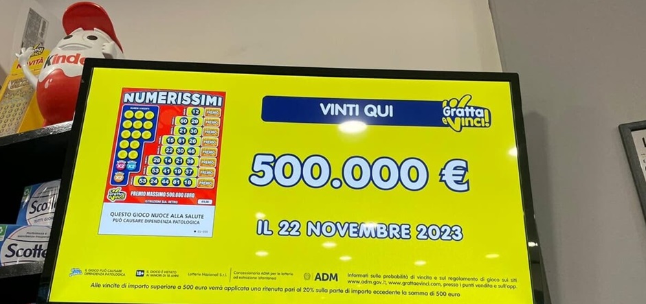 A settembre si è verificata una straordinaria vincita alla tabaccheria Billanti-Barraco di via Madonna del Ponte a Balestrate. Un Gratta e Vinci di 5 euro ha regalato ben 500 mila euro a un fortunato giocatore la cui identità resta ancora nascosta. Grande festa nei locali alla notizia.