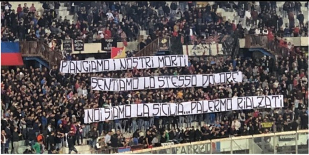 Nei giorni scorsi anche la Curva Nord del Catania ha reso omaggio alle vittime dell’alluvione dello scorso fine settimana. Lo striscione recitava: “Piangiamo i nostri morti, sentiamo lo stesso dolore. Palermo rialzati”. Una solidarietà da applausi, che esalta tutta l’umanità che sanno esprimere i siciliani.