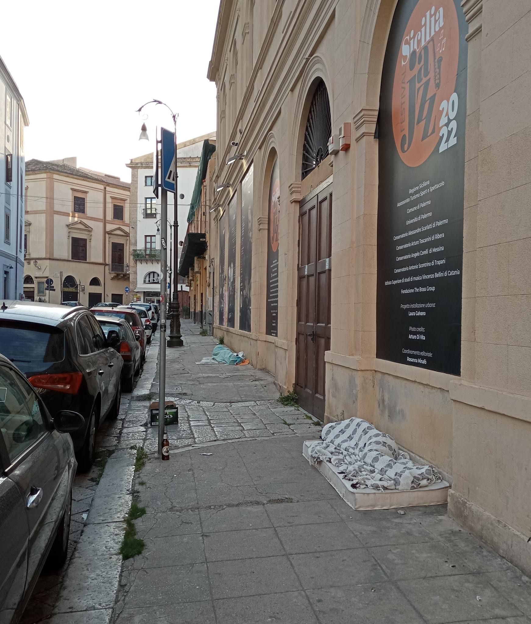 Via Cantavespri, zona centrale della movida palermitana, adesso anche “casa” di alcuni senzatetto. Da alcune settimane diversi clochard abitano nei vicoli della “Palermo night“, giacendo per strada, a volte su di un materasso, altre su sottili cartoni, sotto gli occhi di giovani e adulti che passeggiando rumorosamente osservano la scena. Uno di loro, giace su via Sant’Anna, strada super affollata dai giovani durante il weekend, altri tre invece su via Cantavespri. Un vero e proprio dormitorio a cielo aperto che si trasforma in lamentele da parte dei residenti “Oltre agli innumerevoli disagi legati alla malamovida, ora alcuni poveri disperati hanno trasferito sul marciapiede accanto al teatro il loro giaciglio” -continua un cittadino- “con tutte le conseguenze derivanti dall’espletamento dei bisogni fisiologici” conclude.