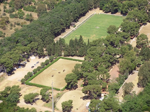 campo in erba di mq 5.200, suddiviso in n. 10/12 aree di mq 400 circa;campo in sabbia dotato di un sottofondo ammortizzante di mq 2.700, suddiviso in n. 6 aree di mq 400 circa;