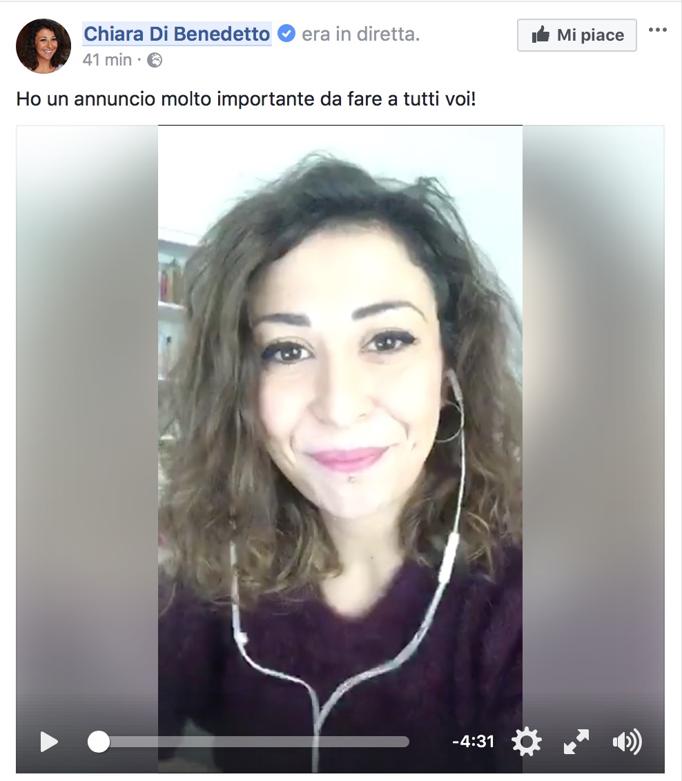 In diretta Facebook la deputata nazionale M5s Chiara Di Benedetto ha stamani annunciato la candidatura alle imminenti Parlamentarie del Movimento 5stelle. «È stata – ha spiegato – una scelta meditata, una scelta di cuore. Le strade erano due: interrompere il lavoro svolto alla Camera negli ultimi 5 anni oppure proseguirlo con l’obiettivo, insieme al Movimento tutto, che si propone per il governo del Paese, di valorizzare in concreto la Cultura».