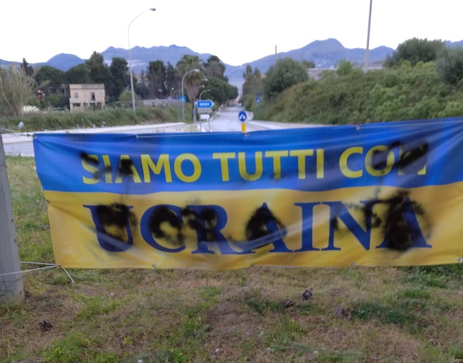 Vandalizzati gli striscioni installati nei giorni scorsi nella rotatoria in uno degli ingressi della città di Partinico, nel palermitano, in cui si sostiene la cultura dell’accoglienza nei confronti dei profughi ucraini che scappano dalla guerra. Nella notte qualcuno ha utilizzato delle bombolette spray di colore nero ed ha macchiato in diversi punti i due striscioni che sono stati apposti su iniziativa di un noto docente, Enzo Bonomo, in passato ambientalista in prima linea e già assessore del Comune di Partinico.