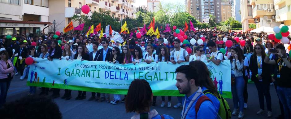 I ragazzi stanno sfilando lungo le strade con striscioni nel segno della legalità e della lotta alla mafia.