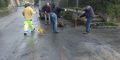 L’incendio è stato quindi spento, mentre la Protezione Civile, con l’aiuto degli stessi operatori della ditta, stanno provvedendo a ripulire la strada.