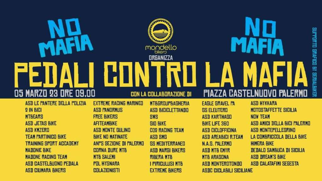Con la bici per le vie di Palermo per dire “No alla Mafia” e per ringraziare le forze dell’ordine per la cattura del boss latitante, per oltre trent’anni, Matteo Messina Denaro. E’ questo il fine della manifestazione “Pedali Contro la Mafia” organizzata dalla ASD Mondello Bikers e in programma domenica 5 Marzo a Palermo.