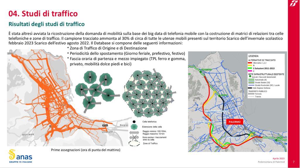 Nel corso dell’incontro sono stati illustrati i metodi che hanno consentito di verificare i flussi di traffico che ogni giorno percorrono quel tratto stradale (dall’ospedale Cervello, nella zona Nord, e in prossimità di via Giafar, in quella Sud) in modo tale da poter tarare il progetto con una previsione il più vicina possibile alla realtà. Per la prima volta in Sicilia per la progettazione sono stati utilizzati i “big data” provenienti da radar per il traffico veicolare e dal tracciamento delle celle telefoniche per monitorare gli spostamenti. Dal monitoraggio effettuato nello scorso febbraio è stato appurato che, nell’area metropolitana di Palermo, ogni giorno in media si effettuano dai due ai tre milioni di spostamenti.