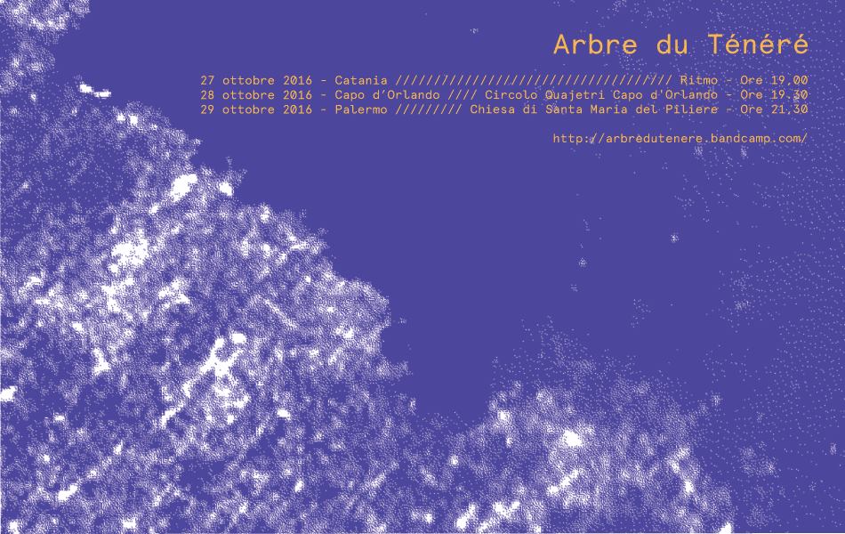 Sabato 29 ottobre, alle h 21:30, si conclude la tournée siciliana degli Arbre du Ténéré, duo di musica elettronico-psichedelica composto dal chitarrista Maurizio Abate e dal designer e performer musicale Canedicoda.