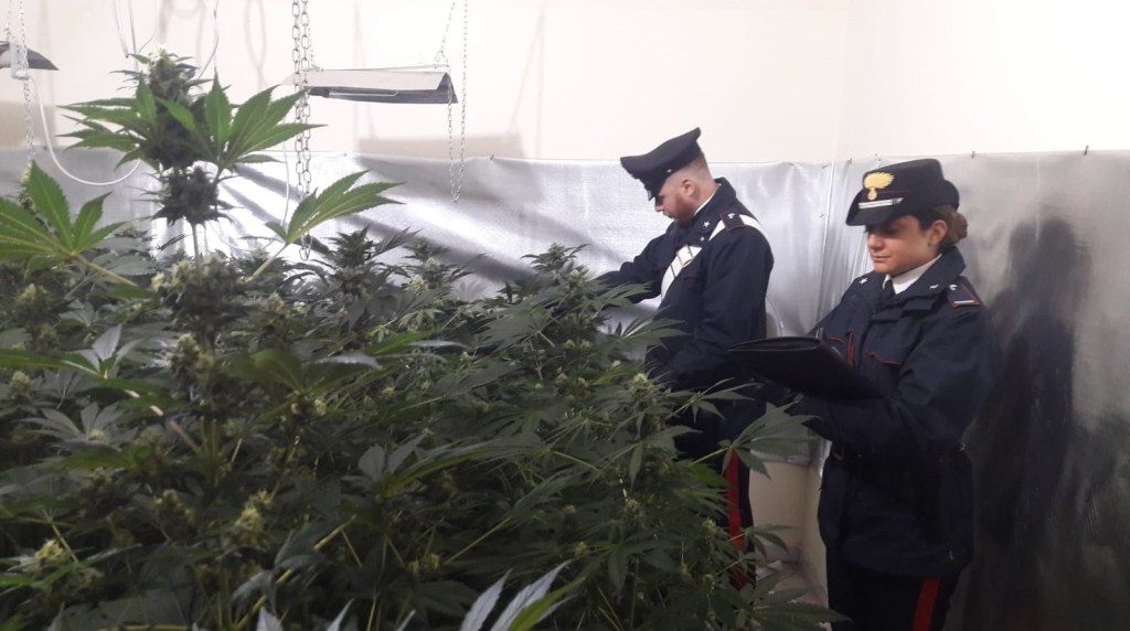 Nel corso della perquisizione i carabinieri in via Feli a Palermo hanno scoperto che Clemente ha trasformato due stanze dell’abitazione al piano terra in piantagione indoor.