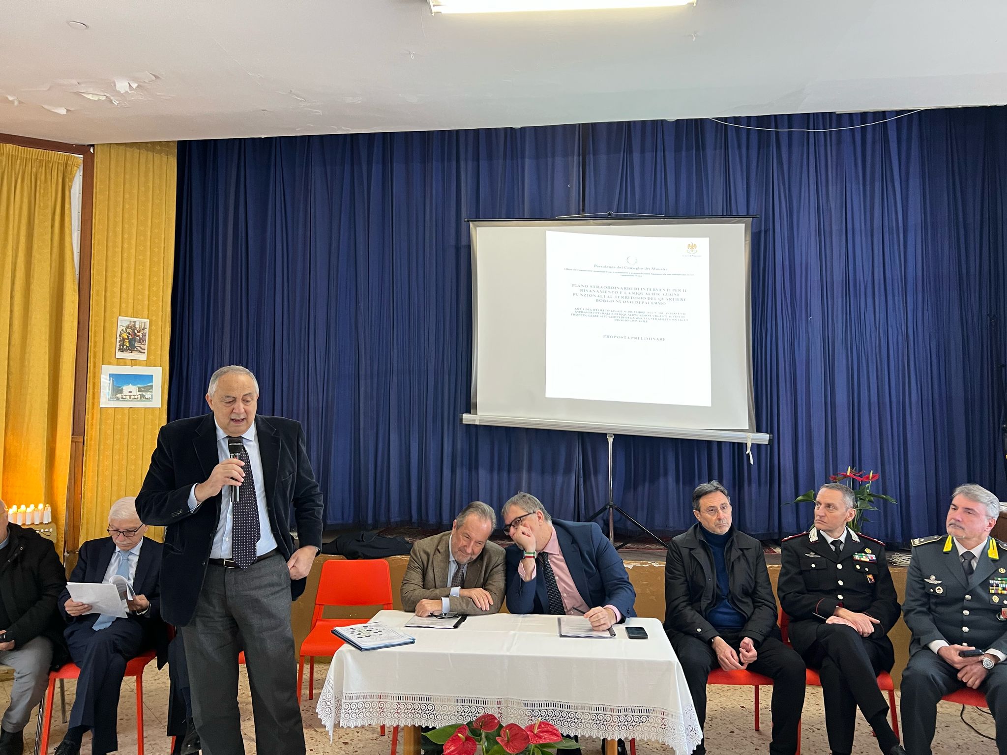 Ringrazio tutti coloro che hanno reso possibile ottenere la copertura economica per un progetto così significativo – ha dichiarato l’arcivescovo di Palermo Mons. Corrado Lorefice- quante volte ci siamo ritrovati in questo luogo dovendo attraversare quello che è sotto i nostri occhi, il degrado dell’aula liturgica di una chiesta che è il segno evidente di come i cristiani si pensino “casa tra le case”. La valenza del progetto che oggi è stato presentato va letta proprio rispetto a questo significato, perché se noi in questo momento stiamo guardando a questa struttura che simboleggia il degrado di un quartiere, ci impegniamo a non voler più definire Borgo Nuovo – e nessun altro quartiere – una “periferia”. Il piano di riqualificazione di questa parte ci città deve essere sostenuto da una considerazione che è anche un impegno, quello che non possono esistere quartieri “periferici”: perché lì dove ci sono uomini, donne, famiglie e case c’è in realtà il centro della città”.