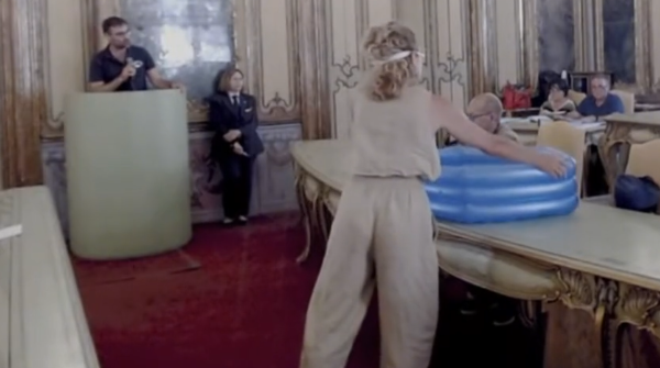 La protesta della consigliera ha creato scompiglio costringendo il presidente del Consiglio Giulio Tantillo a sospendere i lavori. Ma era solo il seguito di quanto avvenuto il giorno prima, quando la stessa Argiroffi insieme a tre rappresentanti del Movimento 5 Stelle si erano ritrovati davanti alla struttura del Pallone, ex sala stampa dei Mondiali di calcio Italia ’90, prima soluzione alternativa individuata dal Comune. In quell’occasione, con tanto di taglio ironico di un nastro, era stata inaugurata la piccola piscina gonfiabile poi portata in Consiglio.