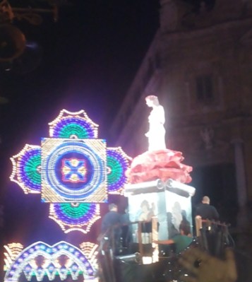Uno spettacolo durato più di quattro ore con danzatori acrobati, ballerini in scena ed effetti multimediali. E per la prima volta l’arcivescovo di Palermo, monsignor Corrado Lorefice, è salito sul carro con il sindaco Leoluca Orlando.