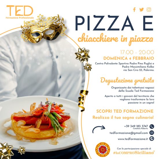 Continuano gli appuntamenti del ciclo “Pizza in piazza” organizzati da Ted Formazione, che hanno portato nelle piazze di due comuni del Palermitano, Monreale e Carini, le maestranze siciliane istruite dai docenti dell’ente di formazione a mostrare la propria abilità nell’arte bianca preparando pizze con ingredienti esclusivamente made in Sicily.