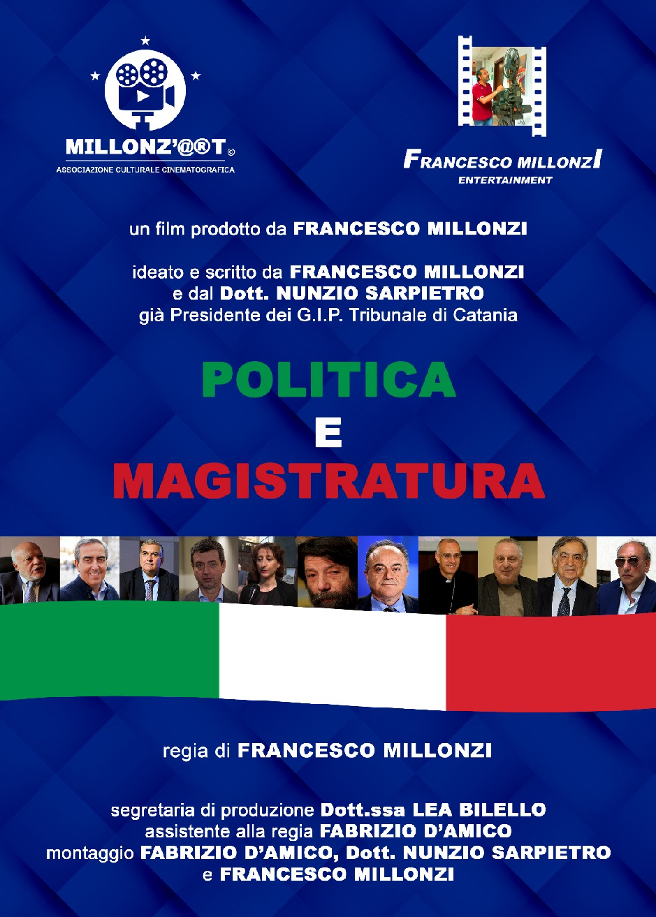 Sdoganare gli (eventuali) pregiudizi sulla cooperazione tra politica e magistratura è la mission del docufilm “Politica e Magistratura”. Una narrazione autentica, priva di qualsiasi finanziamento; il film, uscito lo scorso 25 novembre, si propone di analizzare in modo oggettivo e senza fini propagandistici le dinamiche che legano il sistema giudiziario alla politica. Scritto a due mani, dal regista Francesco Millonzi e da Nunzio Sarpietro, presidente dei Gip di Catania, la pellicola è attualmente trasmessa da oltre 100 emittenti televisive italiane.