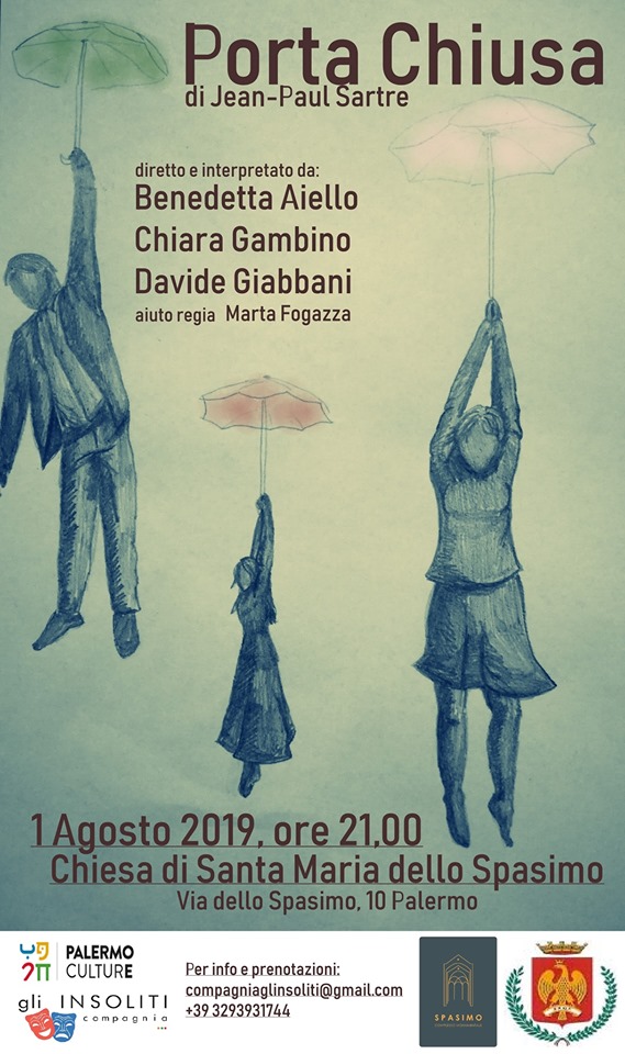 E’ questa la struttura di “Porta chiusa”, il dramma di Jean Paul Sartre che andrà in scena giovedì 1 agosto alle 21 tra le mura della chiesa dello Spasimo, a cura della compagnia teatrale palermitana “Gli insoliti”.