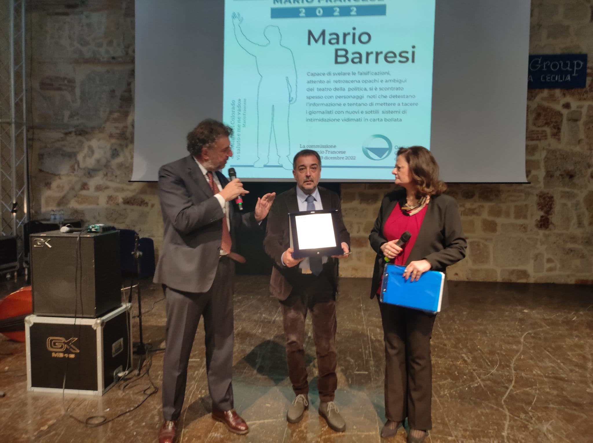 Va a Mario Barresi la XXIV edizione del Premio giornalistico Mario Francese, manifestazione che torna dopo quasi due anni di assenza e che nel 2021 non si è svolta a causa dell’emergenza sanitaria legata al Covid 19. La cerimonia di premiazione è stata presentata da Lidia Tilotta, giornalista Rai del Tgr Sicilia.