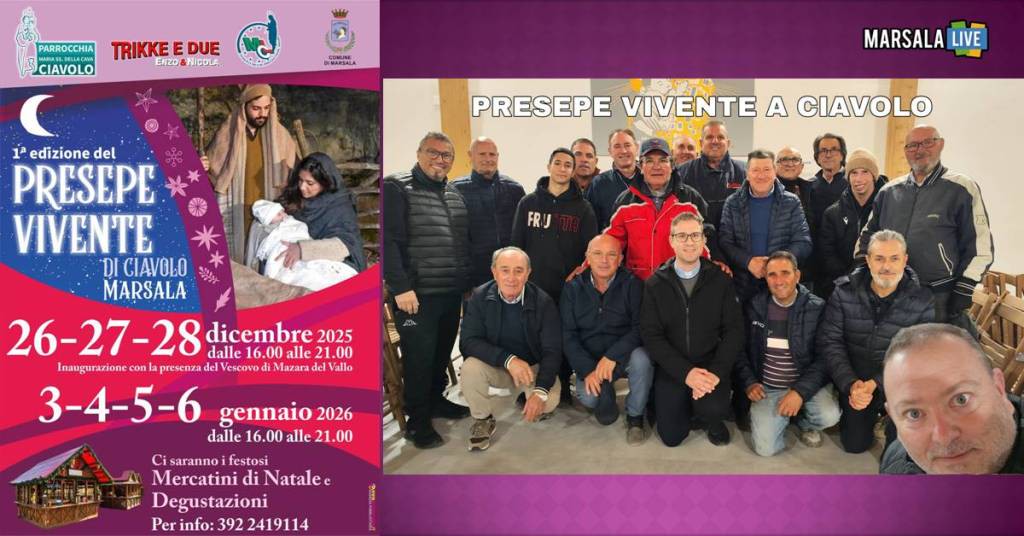Marsala – Il Presepe Vivente di Ciavolo nasce nel cuore della Parrocchia Maria Santissima della Cava e si presenta fin da subito come un evento nuovo e molto atteso. Il percorso narrativo e spirituale aprirà al pubblico dal 26 al 28 dicembre 2025 e dal 3 al 6 gennaio 2026, ogni giorno dalle 16.00 alle 21.00, negli spazi parrocchiali di Ciavolo.