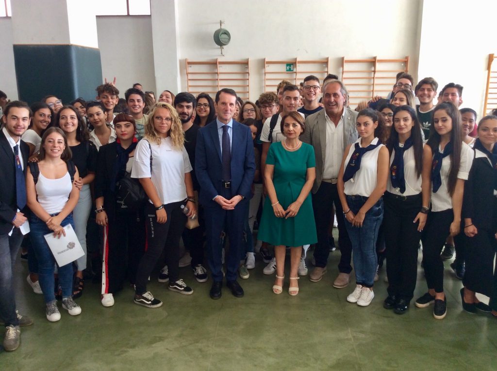 Gli studenti delle prime classi sono stati oggi accolti dall’assessore regionale del turismo, dello sport e dello spettacolo, Sandro Pappalardo che, insieme al dirigente scolastico, Pasqualina Gancia, ha esortato i giovani ad “impegnarsi per cambiare tutti insieme la Sicilia”, ma il rappresentante della Giunta di governo, ha anche invitato gli studenti a “perfezionare la conoscenza delle lingue che diventa fondamentale per chi aspira a lavorare nel mondo del turismo”.