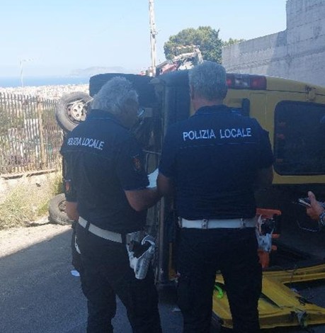 Un pulmino con a bordo un gruppo di bambini in via Ruffo di Calabria a Palermo si è cappottato. Pare che si siano rotti i freni e il mezzo si è messo di fianco.