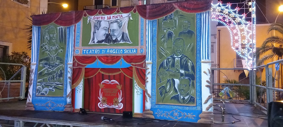 Aggredito sul palco a Termini Imerese mentre stava rappresentando con i pupi dell’antimafia lo spettacolo “padre Pino Puglisi un prete contro la mafia”.