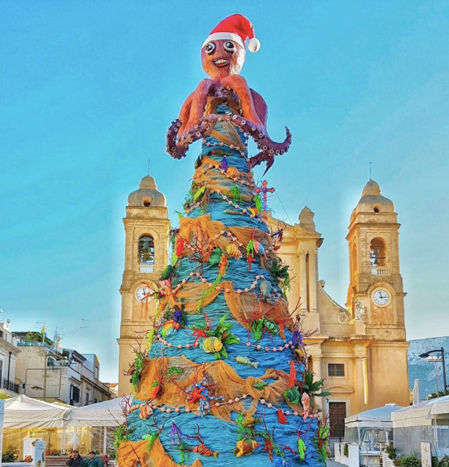 Un albero che si sposa perfettamente con il presepe vivente marino visitabile a Terrasini in questi giorni.