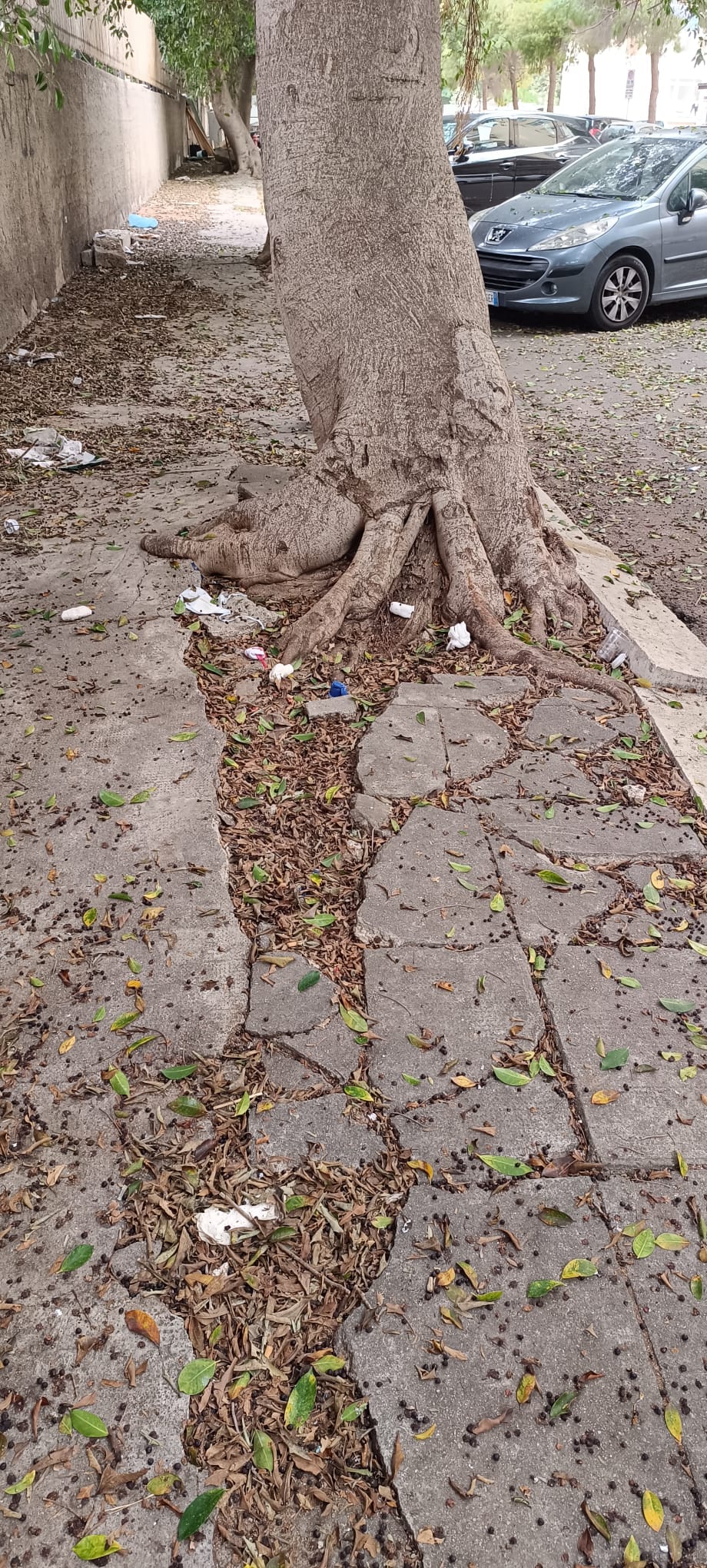 Altro problema correlato e documentato dai residenti, che lamentano disservizi oltre che nella cura del verde e dell’illuminazione anche nei servizi di spazzamento, è la mancata pulizia dei marciapiedi praticamente invasi dalle foglie, oltre che da qualsiasi altro tipo di rifiuti, che, spesso, vengono rimosse personalmente da chi è addetto alle pulizie dei condomini o dai commercianti che, per decoro ed igiene, provvedono personalmente alla loro rimozione.