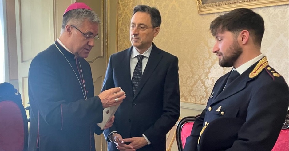 Il Questore della provincia di Palermo ha consegnato all’arcivescovo della Diocesi di Palermo, S.E.R. Mons. Corrado Lorefice, un’ampolla con l’olio ottenuto dal raccolto degli ulivi piantumati nel citato “Giardino della Memoria”.