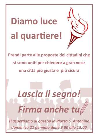 “Dopo la fiaccolata del mese scorso che ha registrato una serie di proposte provenienti dalla chiesa, dai cittadini, dai commercianti e dalle istituzioni – dice Antonio Nicolao vicepresidente della prima circoscrizione – è stato predisposto un esposto con i punti da sottoporre al prefetto, al questore e al sindaco”.
