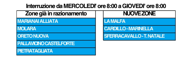 Mercoledì a Marinai Alliata, Molara, Oreto Nuova, Pallavicino, Castelforte e Pietratagliata si aggiungono via La Malfa, Cardillo, Marinella, Sferracavallo e Tommaso Natale.