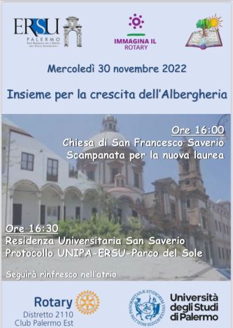 Gli spazi dell’Ersu possono contribuire a ridurre la dispersione scolastica e offrire ai giovani che hanno voglia di studiare, ma che sarebbero impossibilitati per il disagio socioeconomico e culturale in cui versano le famiglie, la possibilità di studiare e affrontare gli studi scolastici e universitari. La collaborazione all’iniziativa, sostenuta anche dal Rotary Palermo Est, prevede il coinvolgimento degli studenti universitari volontari ospiti della residenza universitaria “San Saverio”, cui saranno riconosciuti crediti formativi per lo svolgimento del tirocinio curriculare in favore dei ragazzi che lavoreranno al progetto, insieme agli operatori volontari del Parco del Sole e del Rotary Palermo Est.