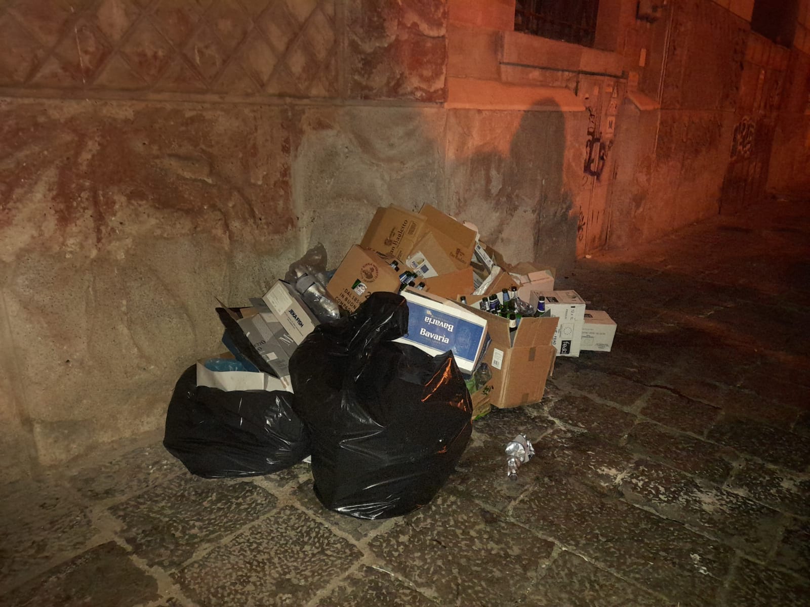 Ci risiamo, purtroppo. Sacro e profano si mischiano nei pressi dell’area pedonale di via Amari, a Palermo. Alle spalle del teatro Politeama, luogo simbolo della città, qualcuno ha deciso di far prevalere nuovamente l’inciviltà e di abbandonare sul posto diversi cumuli di spazzatura. Non è la prima volta e probabilmente non sarà l’ultima, ma sorprende che nemmeno il carro di Santa Rosalia, patrona della città, distolga alcuni concittadini dallo sporcare e degradare un’area storica del capoluogo siciliano.
