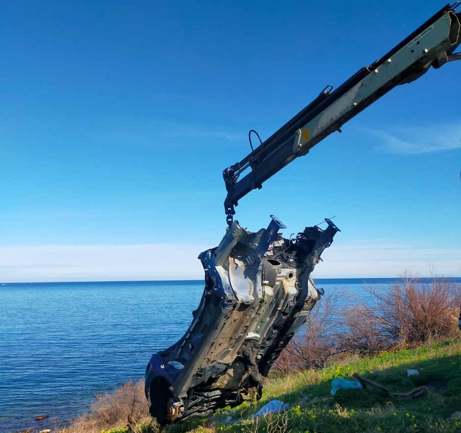 Nonostante il terreno impervio e la distanza dalla strada, con la collaborazione di RAP – che ha autorizzato l’intervento di un rottamatore loro convenzionato – gli agenti sono riusciti a recuperare 7 carcasse di auto, avviate al corretto smaltimento. Le operazioni continueranno nei prossimi giorni con l’ausilio di alcune attrezzature speciali per cercare di recuperare altri rottami, lanciati sugli scogli.