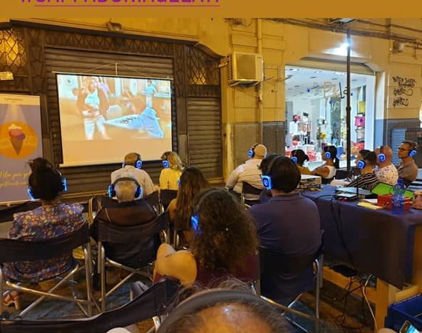 (Nella foto, una delle serate di “Arena Bagnasco”, quando i commercianti hanno organizzato delle proiezioni cinematografiche con l’ascolto dell’audio in cuffia per non disturbare i residenti).