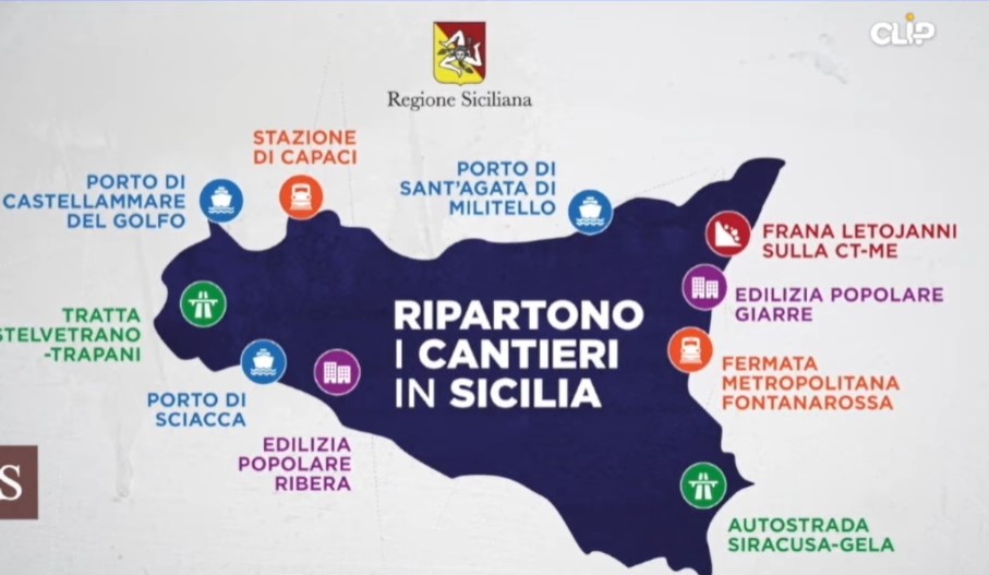 Il passaggio successivo sarà quello dell’edilizia popolare “in provincia di Agrigento e poi a Giarre nel Catanese. Quindi le opere ferroviarie per la realizzazione della stazione metro di Fontanarosa a Catania e per quella di capaci nel Palermitano ma anche il nuovo via alle opere per la tratta ferroviaria Castelvetrano Trapani”.