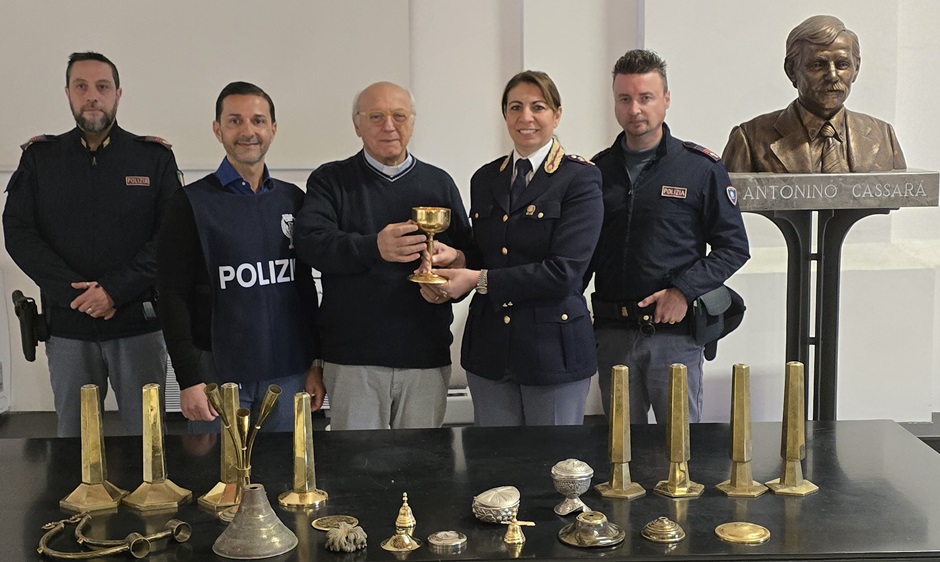 Calici e pissidi sono stati riconsegnati a Padre Antonio Garau, parroco della Parrocchia di San Paolo Apostolo, il quale ha voluto esprimere un senso di riconoscenza ai poliziotti che hanno restituito gli oggetti sacri al culto dei fedeli di un’intera comunità, ferita nell’anima, nel recente periodo, da gesti contrari ad ogni principio di legalità e senso civico.