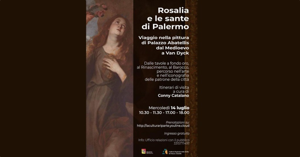 In occasione della ricorrenza della Santa Patrona di Palermo, mercoledì 14 luglio 2021 a Palazzo Abatellis si svolgeranno quattro appuntamenti per visite guidate attraverso le Sale della Galleria che ospitano opere dedicate a Rosalia e alle Sante della città.