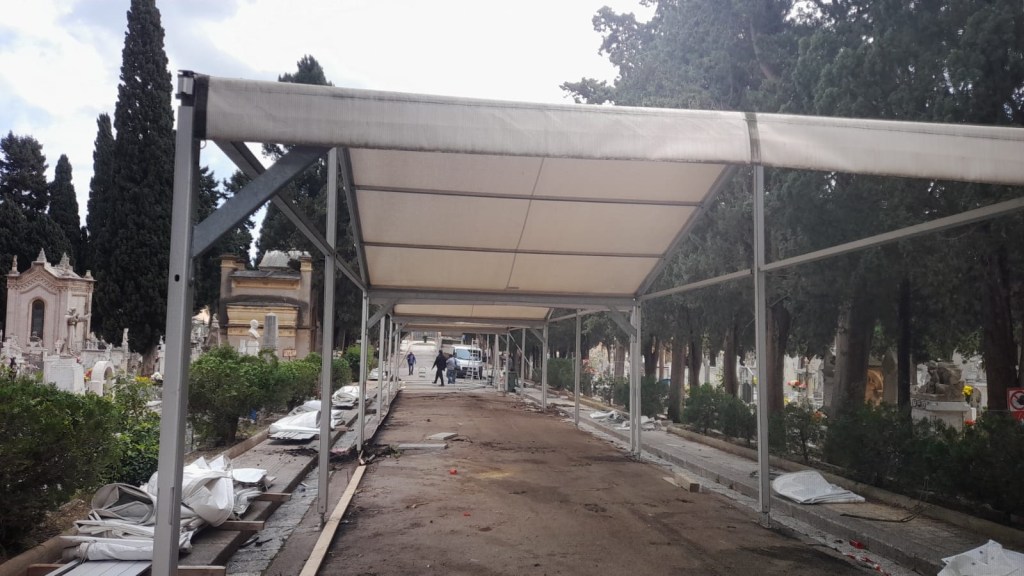 Fine di un’era al cimitero dei Rotoli di Palermo. Dopo aver completato le operazioni di sepoltura di tutte le bare che, in questi anni di emergenza, erano rimaste a deposito, da oggi le maestranze del Comune di Palermo procederanno a smontare le tendostrutture presenti del camposanto palermitano. Uno degli impianti simbolo del caos che ha regnato nella struttura di Vergine Maria, a breve, sparirà. Un chiaro cambio di tendenza rispetto al passato, in linea con quelli che sono stati gli auspici espressi dal sindaco Roberto Lagalla e dall’assessore Salvatore Orlando durante il weekend di Pasqua, ovvero di una fine dell’emergenza cimiteri entro il Festino.