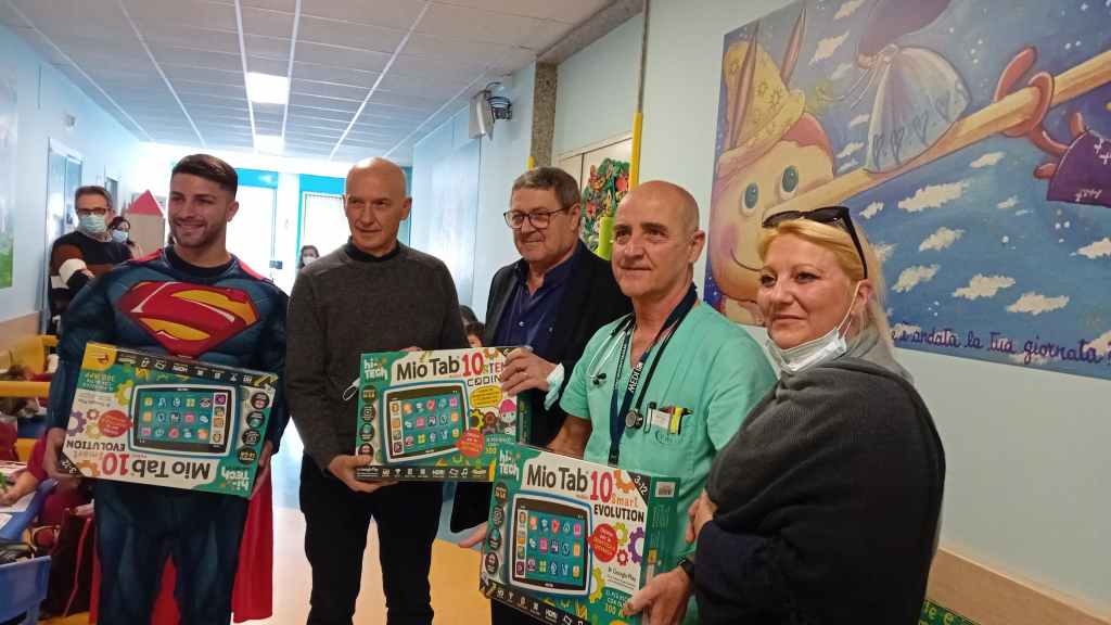 Operazione che si è resa necessaria in seguito a quanto accaduto nella notte fra il 4 e il 5 gennaio, quando alcuni ladri hanno saccheggiato gli spogliatoi del reparto. Trafugati una decina di tablet, dei giocattoli destinati ai bambini, un monitor holter e vari oggetti personale. Fatto che creò sdegno nella società civile, tanto da scatenare una gara di solidarietà per ripianare il mal tolto. Strumenti, quelli donati questa mattina, che saranno fondamentale nel percorso di cura dei pazienti. “I tablet aiutano nell’accoglienza, nell’intrattenimento ma anche nella formazione e della didattica – ricorda il direttore operativo Paolo D’Angelo -. Nello specifico, gli strumenti sono tablet ludici, adatti a bambini fra i 6 e i 10 anni e che servono a stimolare l’intelletto durante questa fase di vita. Gli altri tablet, quelli più generici, li mettiamo a disposizione per mantere una connessione, per visionare file multimediale e che possono essere utilizzati per la didattica durante le fasi di ricovero”.