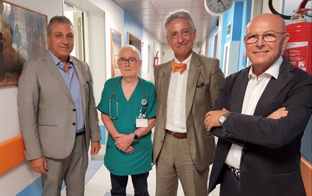 (da sinistra nella foto il Direttore Sanitario Pietro Greco, il professore Aurelio Maggio Direttore del Campus di Ematologia, Maurizio Aricò e Vincenzo Di Rosa, Capo Dipartimento tecnico-amministrativo).