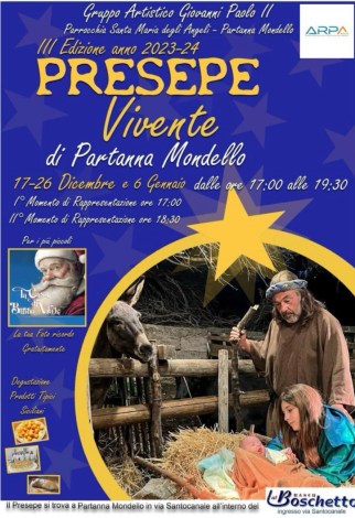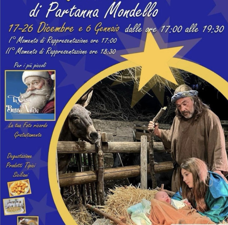 L’annunciazione, la nascita di Gesù: la storia vissuta a Betlemme nella rappresentazione vivente proposta dal gruppo artistico della parrocchia “Santa Maria degli Angeli” (associazione Dona un Sorriso) presso il ranch “Al Boschetto” di via Santocanale a Partanna Mondello il 26 dicembre e il 6 gennaio dalle ore 17 alle 19,30.