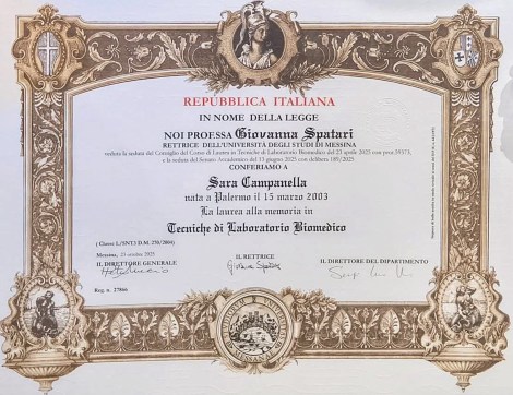 Con una cerimonia densa di commozione è stata conferita la laurea alla memoria a Sara Campanella, la studentessa di Misilmeri vittima di femminicidio. La ragazza frequentava il corso di laurea in tecniche di laboratorio biomedico ed era prossima alla laurea, oggi quel traguardo lo ha conseguito con una partecipata cerimonia che si e’ tenuta al Rettorato dell’università di Messina. L’aula era gremita di studenti e autorità. Presenti i genitori di Sara, il fratello, i colleghi, i professori. “Oggi e’ un giorno speciale, importante, un giorno che avevamo sognato di vivere insieme a Sara, sicuramente in modo diverso. Sara ha fatto tanti sacrifici in questi anni per poter raggiungere questo obiettivo.