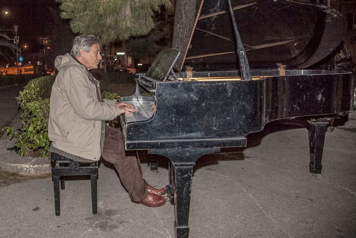 Ha portato il suo pianoforte in piazza come già aveva fatto altre volte. suona di giorni, suona di sera e fa sentire la propria presenza in musica a chi lavora dentro il Palazzo del governo della Regione. Ma al tempo stesso fa lo sciopero della fame. Non mangia mentre aspetta una soluzione.