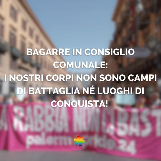 Non sono mancate le polemiche, nel comunicato: “Purtroppo, la seduta in cui si doveva discutere della mozione e del nostro emendamento è stata interrotta per le intemperanze di Gaetano D’Amico (promotore del Comitato “Esistono i Diritti”), col concreto rischio la discussione non riprenda e si sia persa l’ennesima occasione per lavorare sui diritti. Sceneggiata utile esclusivamente a compattare la peggiore destra varchiana e a facilitargli il lavoro, com’è accaduto ieri – si legge nel testo -. Come previsto, a seguito della sospensione della seduta abbiamo assistito all’ennesima serie di dichiarazioni schiumanti di rabbia, a cui siamo ormai abituati, di membri del Consiglio Comunale, che spaziano dalla completa ignoranza su cosa sia l’identità alias (si è paventato il rischio per i criminali di camuffarsi: dalla famiglia Figuccia continuiamo a ricevere perle che resteranno negli annali!), all’accusa al movimento LGBTQIA+ di essere comitato elettorale di una consigliera comunale, proveniente dal consigliere Inzerillo, tristemente tra i primi firmatari della mozione promossa dal Comitato”. Noi, dal nostro canto, continuiamo a ripetere la stessa domanda: il Consiglio Comunale di Palermo è interessato a votare un atto che sia minimamente efficace e utile? I consiglieri comunali che hanno firmato la mozione di “Esistono i Diritti” sono realmente interessati alla comunità LGBTQIA+ o vogliono solo piantare una bandierina totalmente inefficace?”