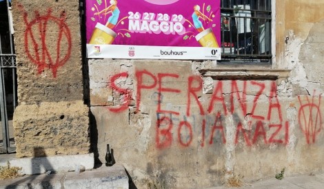 Scritte contro il ministro Roberto Speranza sono apparse all’ingresso di Villa Filippina a Palermo. Oggi il ministro è a Palermo per sostenere il candidato del centrosinistra Franco Miceli. “Speranza boia nazi” e simboli dei no vax.