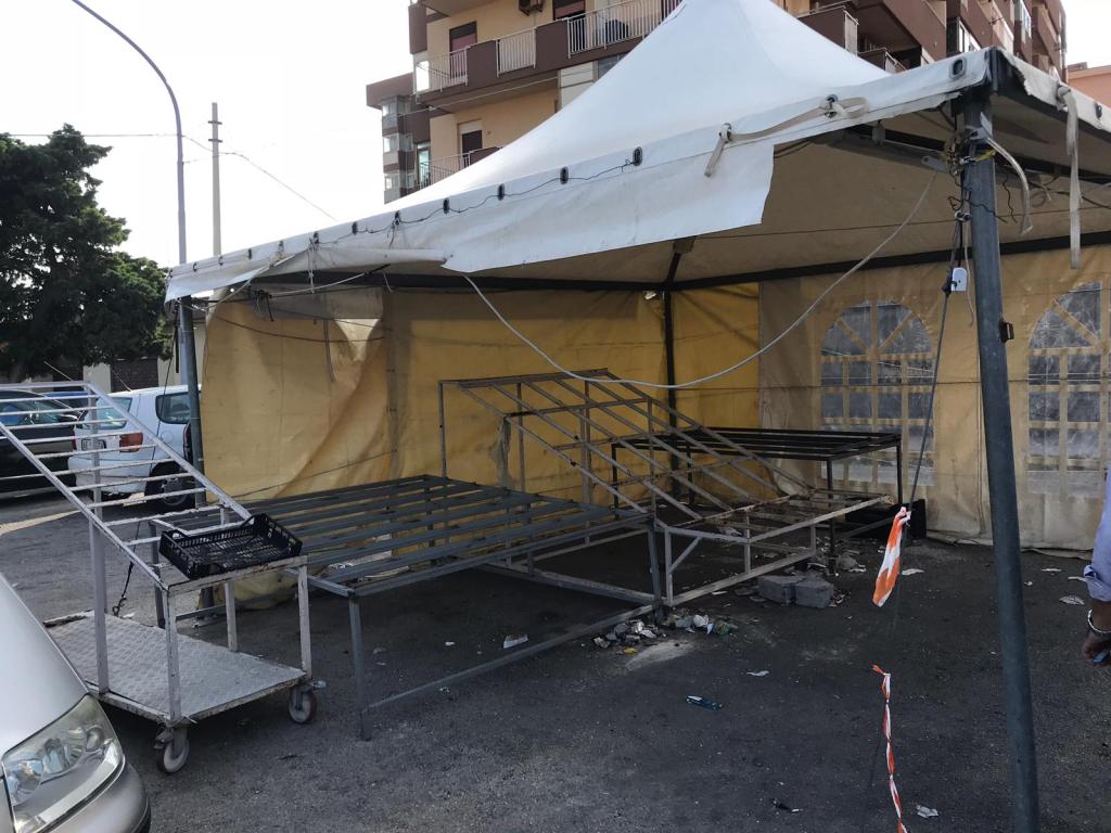La rimozione più consistente è stata quella di un gazebo di circa 30 metri quadrati con all’interno tre rastrelliere, utilizzate per l’esposizione di prodotti; mentre l’altra struttura di circa 6 metri quadrati era chiusa da una rete metallica e conteneva all’interno un bancone.